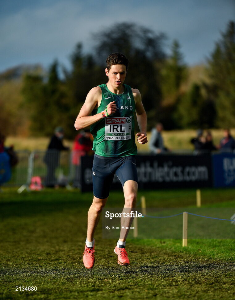 12 December 2021; Luke McCann of Ireland competes in the second leg of the Mixed Relay final during the SPAR European Cross Country Championships Fingal-Dublin 2021 at the Sport Ireland Campus in Dublin. Photo by Sam Barnes/Sportsfile
