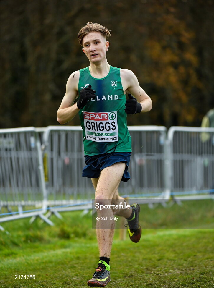 12 December 2021; Nicholas Griggs of Ireland competes in the U20 Men's 6000m final during the SPAR European Cross Country Championships Fingal-Dublin 2021 at the Sport Ireland Campus in Dublin. Photo by Seb Daly/Sportsfile