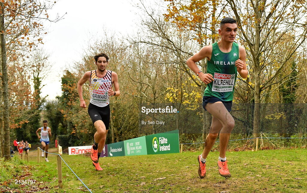 12 December 2021; Keelan Kilrehill of Ireland competing in the U23 Men's 8000m during the SPAR European Cross Country Championships Fingal-Dublin 2021 at the Sport Ireland Campus in Dublin. Photo by Seb Daly/Sportsfile