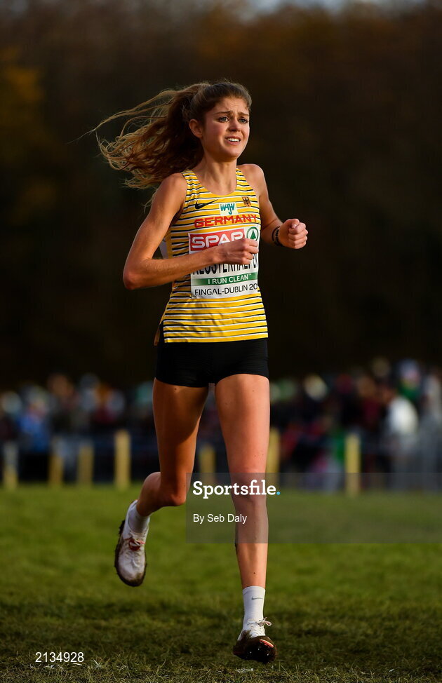 12 December 2021; Konstanze Klosterhalfen of Germany on her way to finishing fifth in the Senior Women's 8000m final during the SPAR European Cross Country Championships Fingal-Dublin 2021 at the Sport Ireland Campus in Dublin. Photo by Seb Daly/Sportsfile
