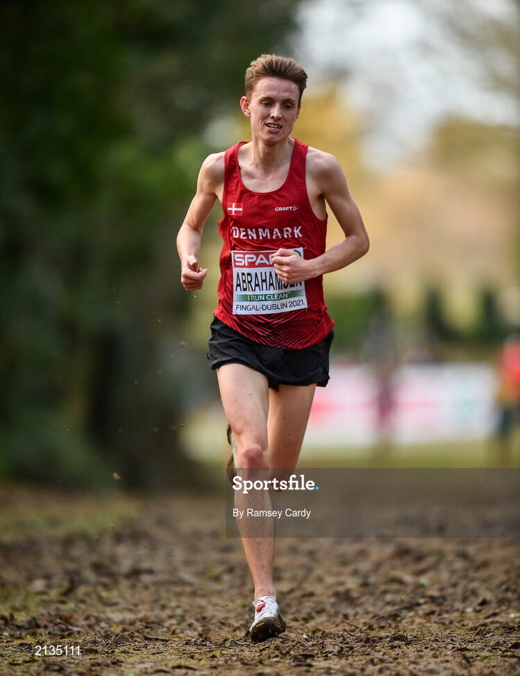12 December 2021; Jakob Dybdal Abrahamsen of Denmark competes in the Senior Men's race during the SPAR European Cross Country Championships Fingal-Dublin 2021 at the Sport Ireland Campus in Dublin. Photo by Ramsey Cardy/Sportsfile