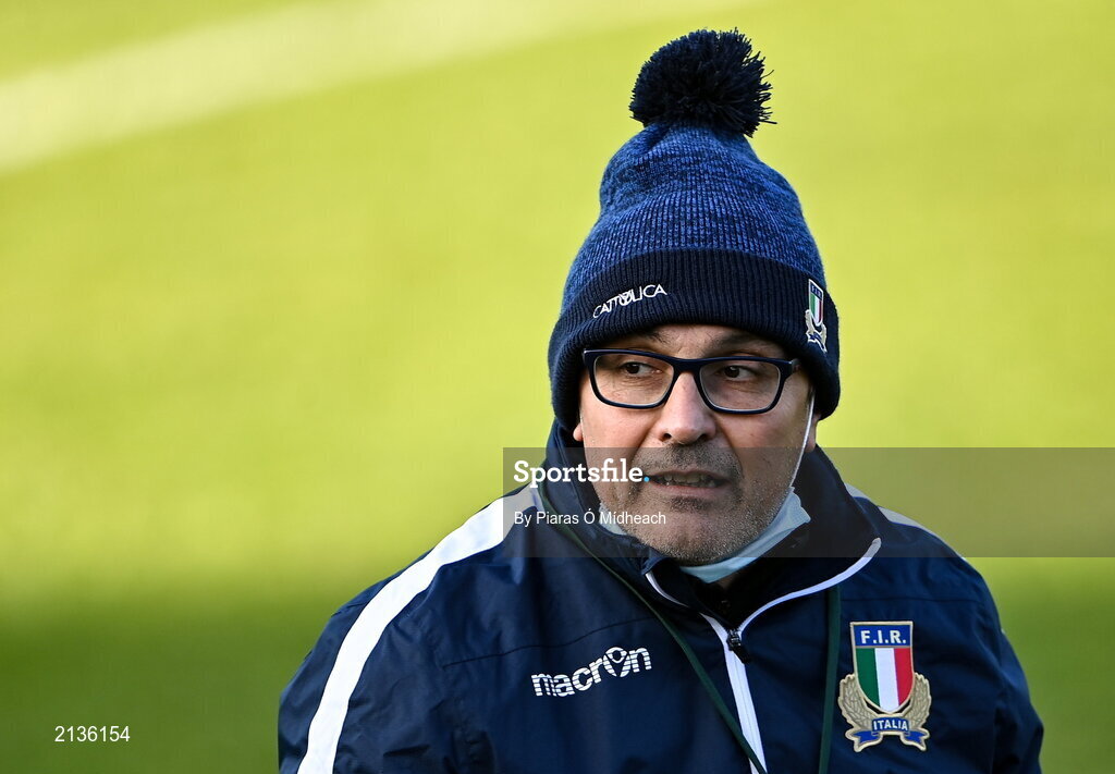 18 December 2021; Italy head coach Massimo Brunello before during the U20's International match between Ireland and Italy at UCD Bowl in Dublin. Photo by Piaras Ó Mídheach/Sportsfile
