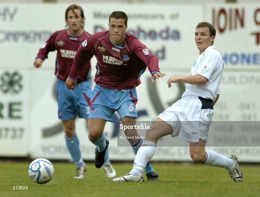 26 June 2006; Derek Pender, Dublin City, in action against Graham Gartland, Drogheda United. eircom League, Premier Division, Drogheda United v Dublin City, United Park, Drogheda, Co. Louth. Picture credit: David Maher / SPORTSFILE