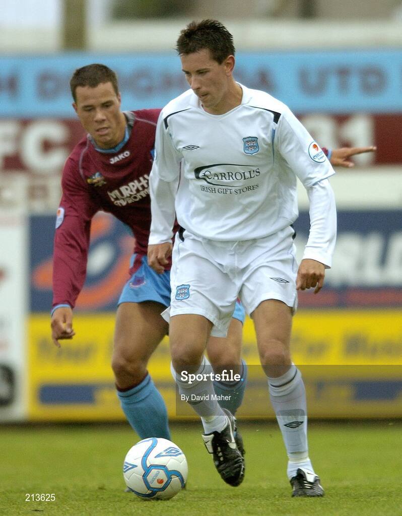 26 June 2006; Ger McCarthy, Dublin City, in action against Graham Gartland, Drogheda United. eircom League, Premier Division, Drogheda United v Dublin City, United Park, Drogheda, Co. Louth. Picture credit: David Maher / SPORTSFILE