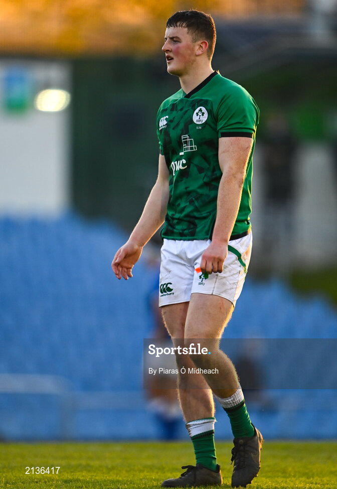 18 December 2021; Fionn Gibbons of Ireland during the U20's International match between Ireland and Italy at UCD Bowl in Dublin. Photo by Piaras Ó Mídheach/Sportsfile