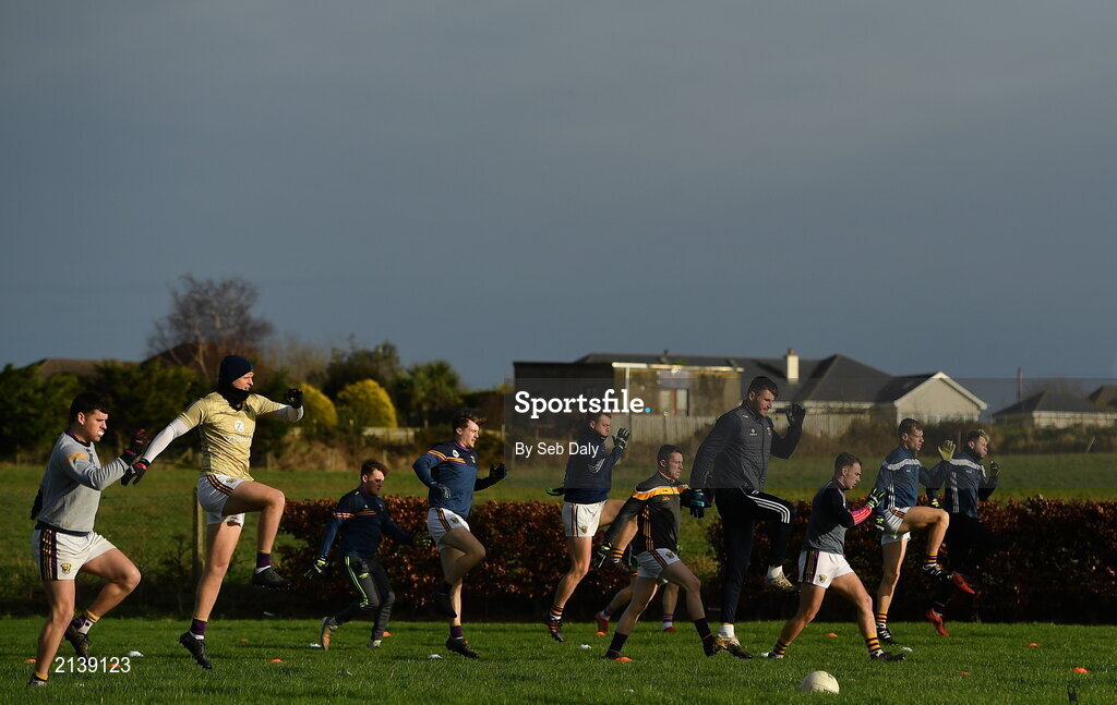 8 January 2022; Wexford players warm-up before their O'Byrne Cup group B match against Laois at Hollymount in Galbally, Wexford. Photo by Seb Daly/Sportsfile
