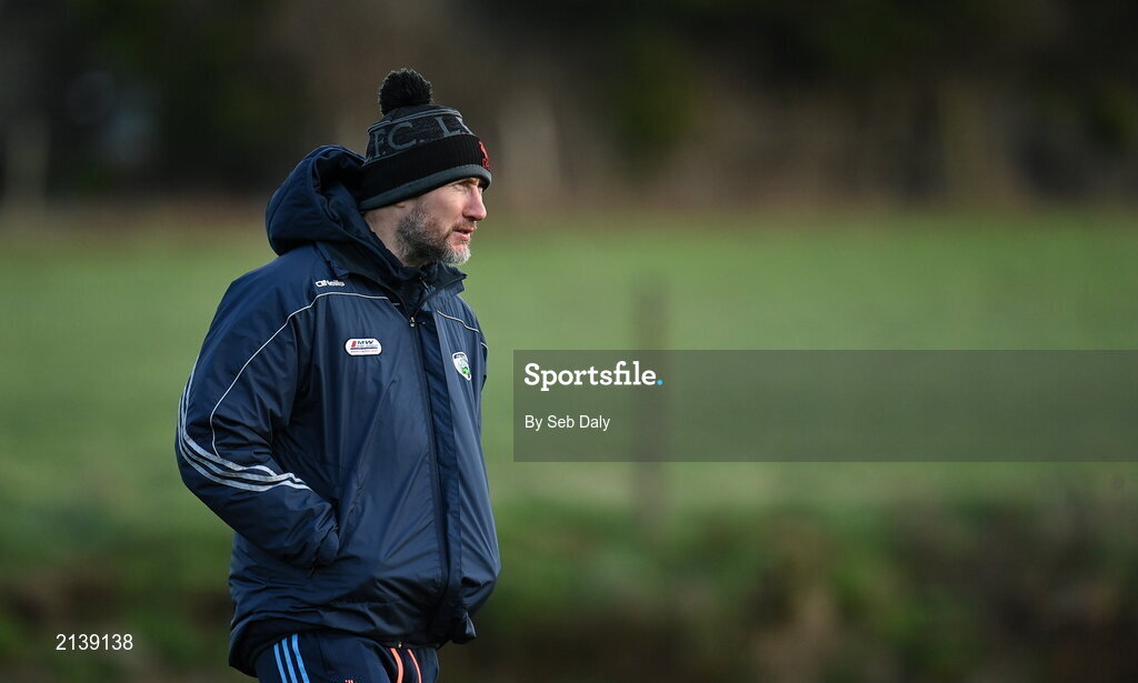 8 January 2022; Laois manager Billy Sheehan before the O'Byrne Cup group B match between Wexford and Laois at Hollymount in Galbally, Wexford. Photo by Seb Daly/Sportsfile