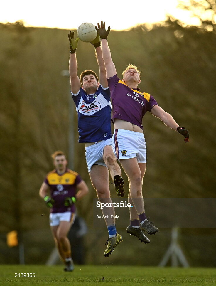 8 January 2022; Brian Daly of Laois in action against Darragh Lyons of Wexford during the O'Byrne Cup group B match between Wexford and Laois at Hollymount in Galbally, Wexford. Photo by Seb Daly/Sportsfile