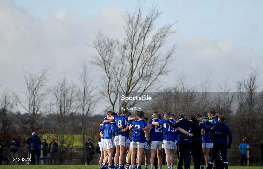 8 January 2022; Laois players and management before the O'Byrne Cup group B match between Wexford and Laois at Hollymount in Galbally, Wexford. Photo by Seb Daly/Sportsfile