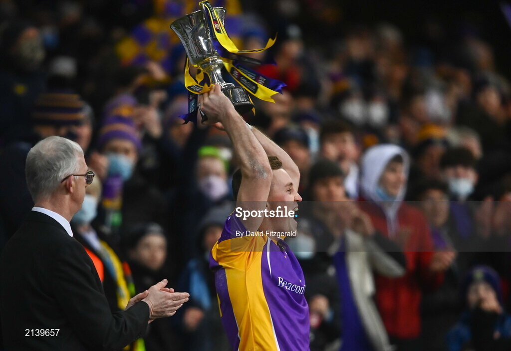 8 January 2022; Kilmacud Crokes captain Shane Cunningham lifts the cup after the AIB Leinster GAA Football Senior Club Championship Final match between Kilmacud Crokes and Naas at Croke Park in Dublin. Photo by David Fitzgerald/Sportsfile