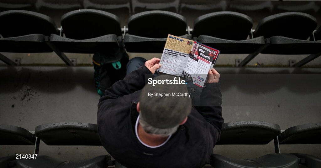 9 January 2022; Stadium announcer Peter Dennehy reads the match programme ahead the AIB Munster Hurling Senior Club Championship Final match between Kilmallock and Ballygunner at Páirc Uí Chaoimh in Cork. Photo by Stephen McCarthy/Sportsfile