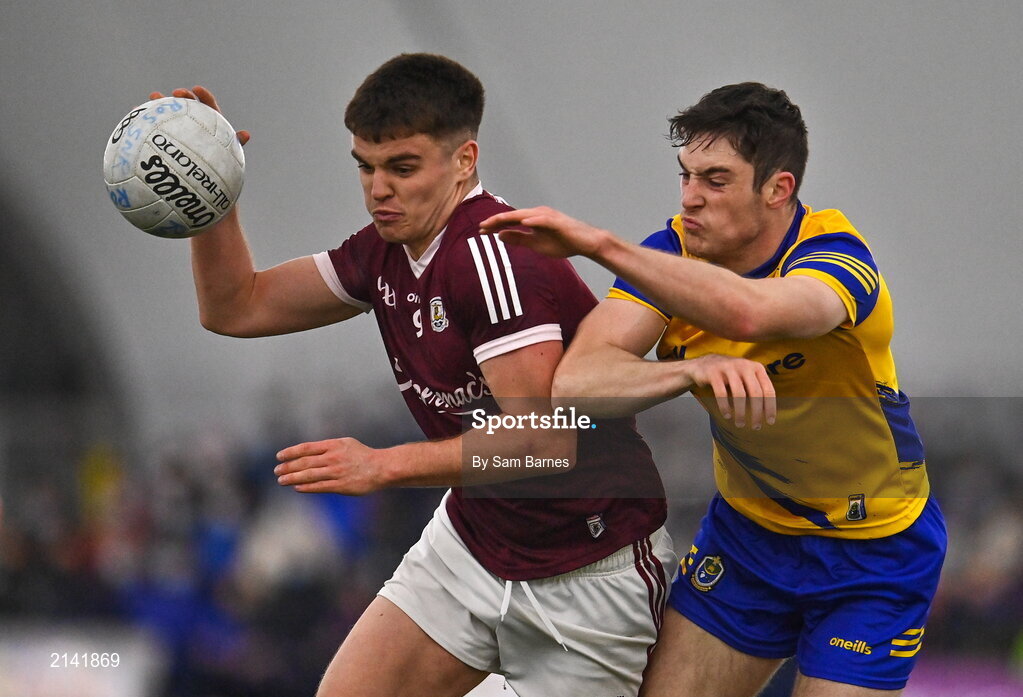 14 January 2022; Paul Kelly of Galway in action against Richard Hughes of Roscommon during the Connacht FBD League Final match between Galway and Roscommon at NUI Galway Connacht Air Dome in Bekan, Mayo. Photo by Sam Barnes/Sportsfile