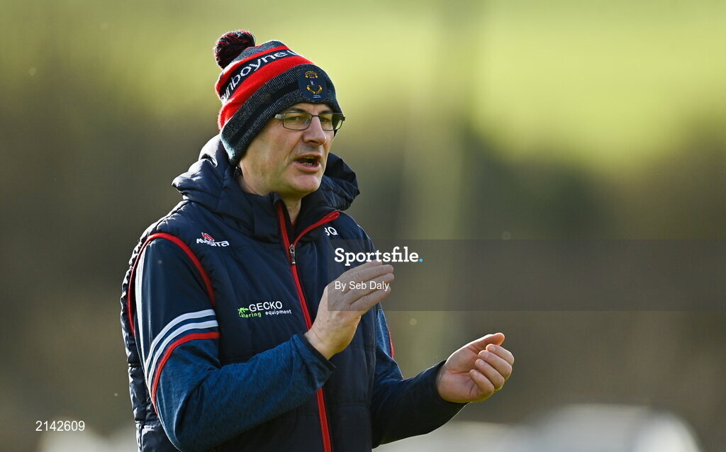 16 January 2022; Dunboyne manager Brendan Quinn before the 2021 currentaccount.ie All-Ireland Ladies Senior Club Football Championship semi-final match between Mourneabbey and St Peter's Dunboyne at Clyda Rovers GAA, in Cork. Photo by Seb Daly/Sportsfile