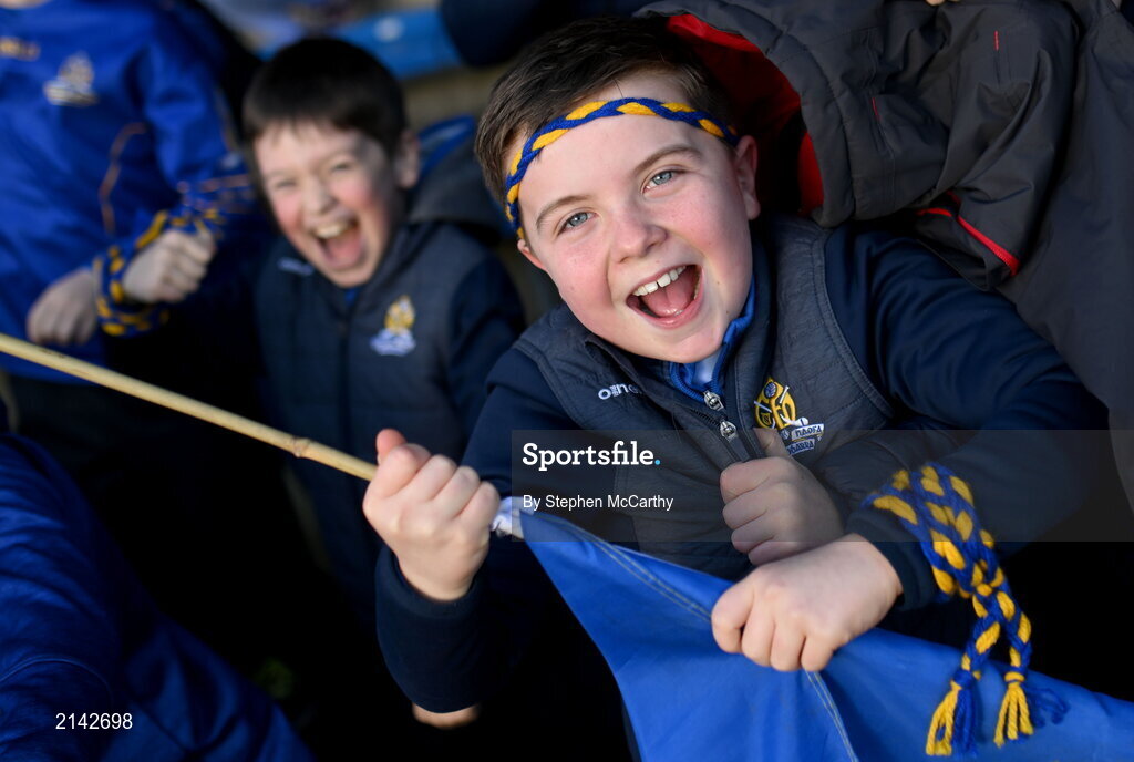 16 January 2022; Young St Finbarr's supporters celebrate an early goal during the AIB Munster GAA Football Senior Club Championship Final match between Austin Stacks and St Finbarr's at Semple Stadium in Thurles, Tipperary. Photo by Stephen McCarthy/Sportsfile