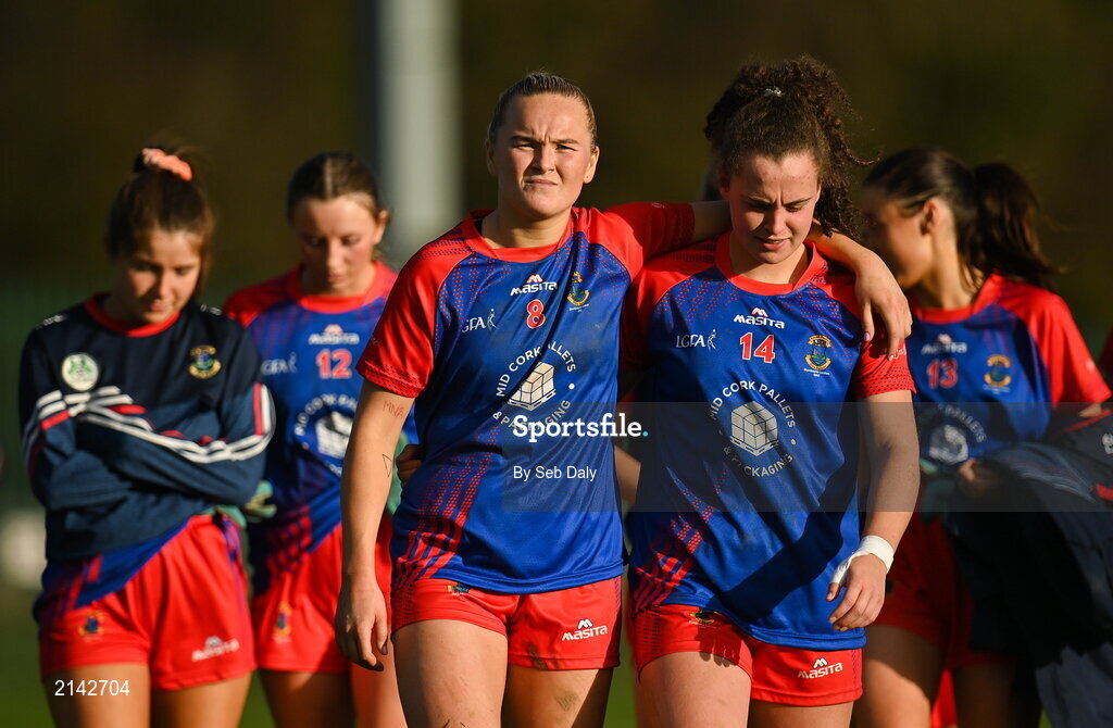 16 January 2022; Vikki Wall, left, and Emma Duggan of St Peter's Dunboyne after their side's defeat in the 2021 currentaccount.ie All-Ireland Ladies Senior Club Football Championship semi-final match between Mourneabbey and St Peter's Dunboyne at Clyda Rovers GAA, in Cork. Photo by Seb Daly/Sportsfile