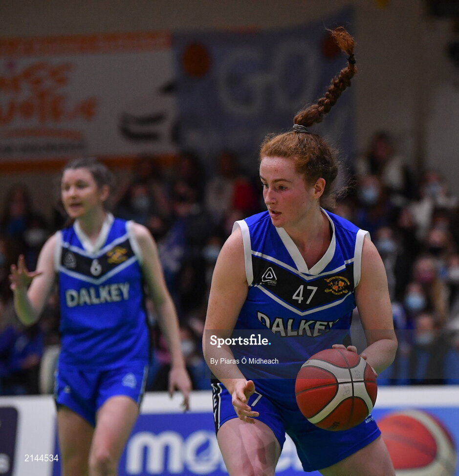 19 January 2022; Lily Egan of Loreto Abbey Dalkey during the Pinergy Basketball Ireland U19 A Girls Schools Cup Final match between Loreto Abbey Dalkey, Dublin, and Our Lady of Mercy, Waterford, at the National Basketball Arena in Dublin. Photo by Piaras Ó Mídheach/Sportsfile