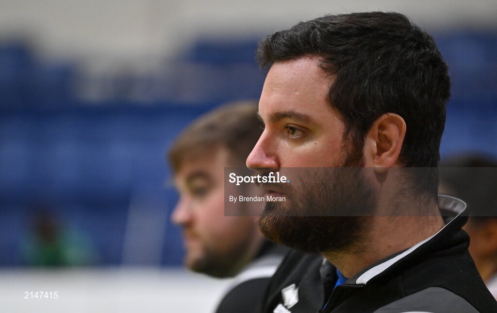 23 January 2022; NUIG Mystics head coach Paul O'Brien during the InsureMyHouse.ie Women’s Division One National Cup Final match between Griffith College Templeogue, Dublin, and NUIG Mystics, Galway, at National Basketball Arena in Tallaght, Dublin. Photo by Brendan Moran/Sportsfile