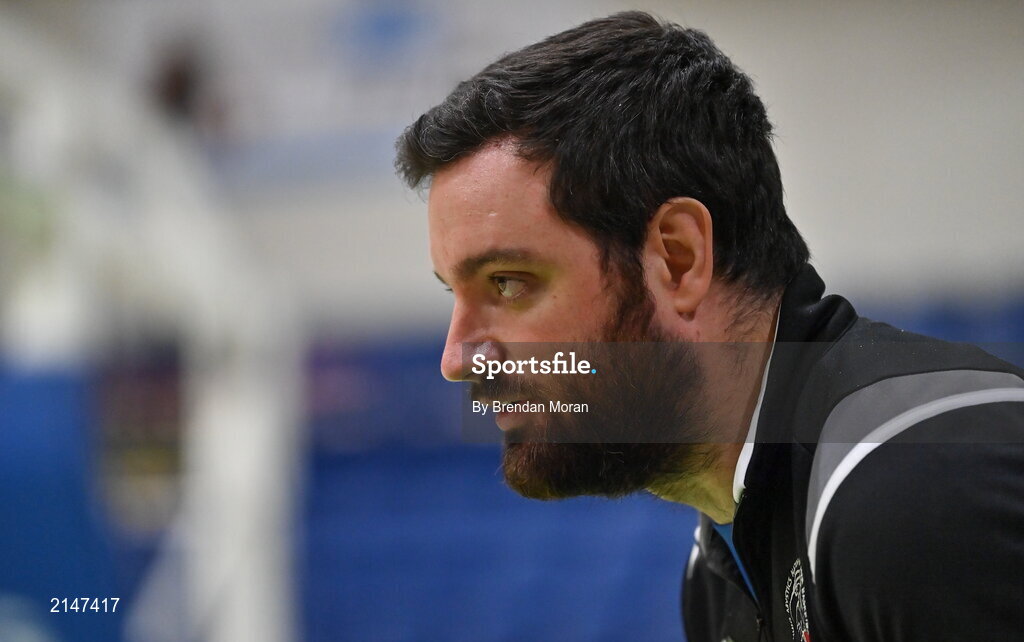 23 January 2022; NUIG Mystics head coach Paul O'Brien during the InsureMyHouse.ie Women’s Division One National Cup Final match between Griffith College Templeogue, Dublin, and NUIG Mystics, Galway, at National Basketball Arena in Tallaght, Dublin. Photo by Brendan Moran/Sportsfile