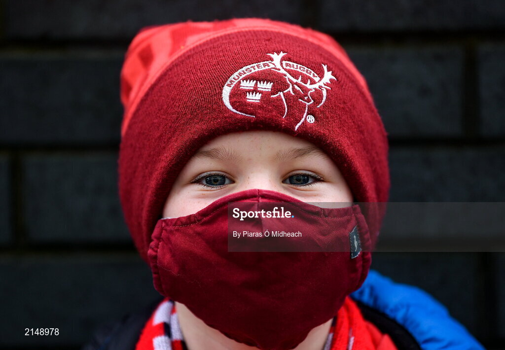 23 January 2022; Munster supporter Leo O'Sullivan, age 9, from Mallow in Cork outside the stadium before the Heineken Champions Cup Pool B match between Munster and Wasps at Thomond Park in Limerick. Photo by Piaras Ó Mídheach/Sportsfile