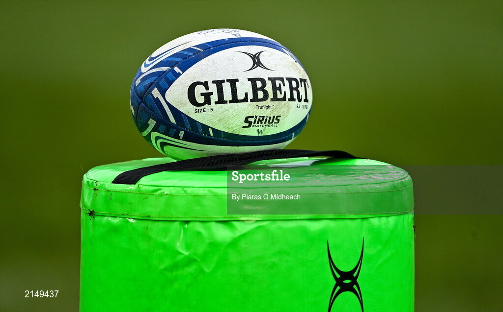 23 January 2022; A general view of a rugby ball before the Heineken Champions Cup Pool B match between Munster and Wasps at Thomond Park in Limerick. Photo by Piaras Ó Mídheach/Sportsfile