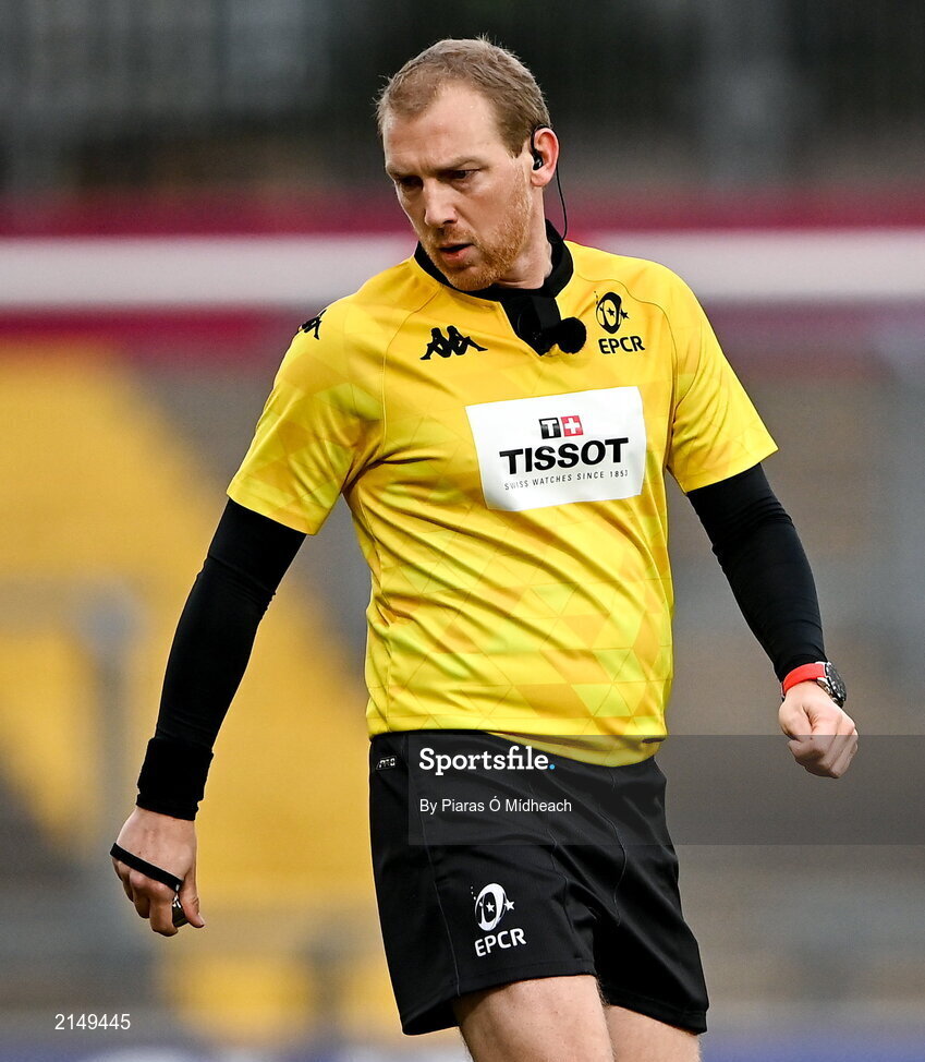 23 January 2022; Referee Tual Trainini during the Heineken Champions Cup Pool B match between Munster and Wasps at Thomond Park in Limerick. Photo by Piaras Ó Mídheach/Sportsfile