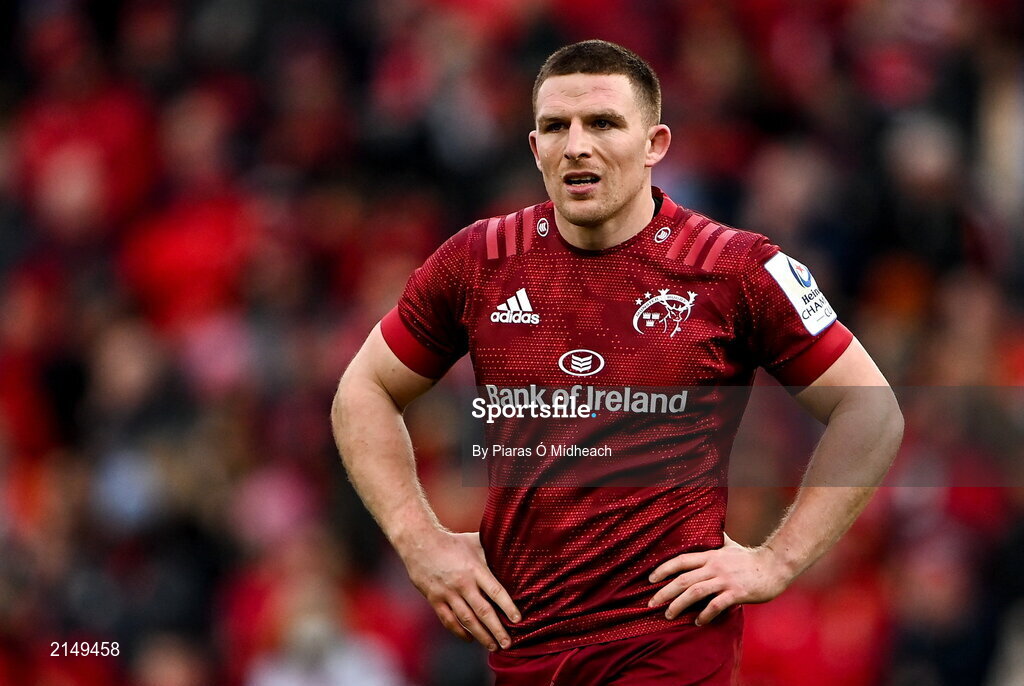 23 January 2022; Andrew Conway of Munster during the Heineken Champions Cup Pool B match between Munster and Wasps at Thomond Park in Limerick. Photo by Piaras Ó Mídheach/Sportsfile