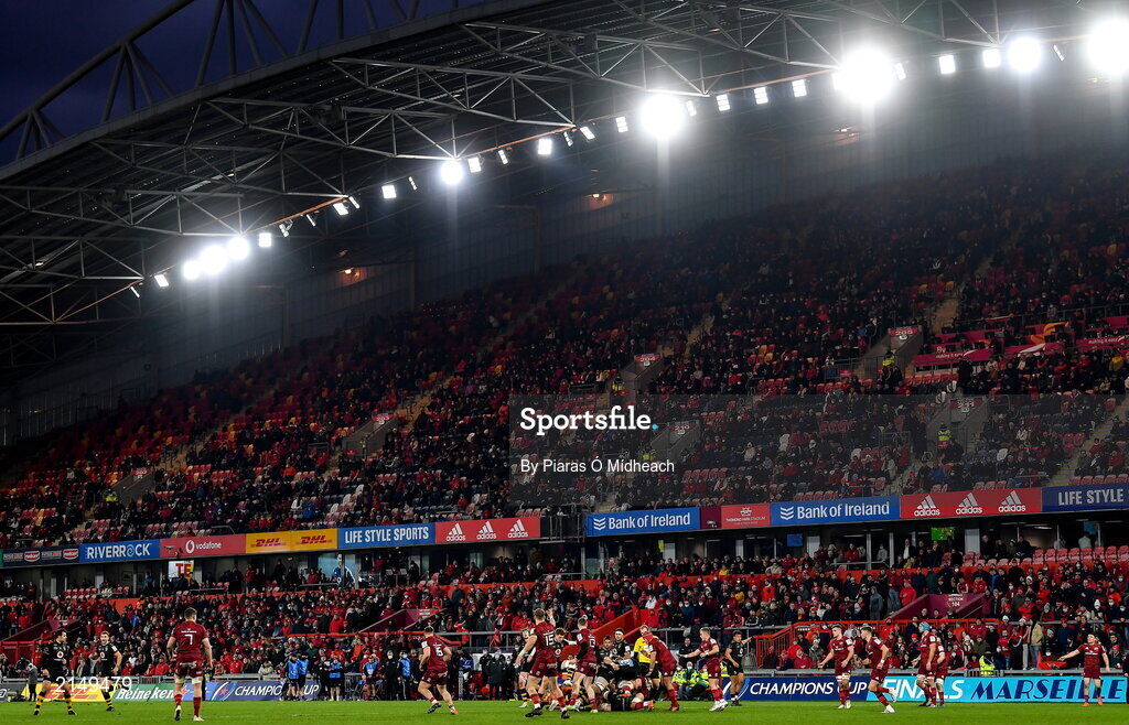 23 January 2022; Spectators during the Heineken Champions Cup Pool B match between Munster and Wasps at Thomond Park in Limerick. Photo by Piaras Ó Mídheach/Sportsfile
