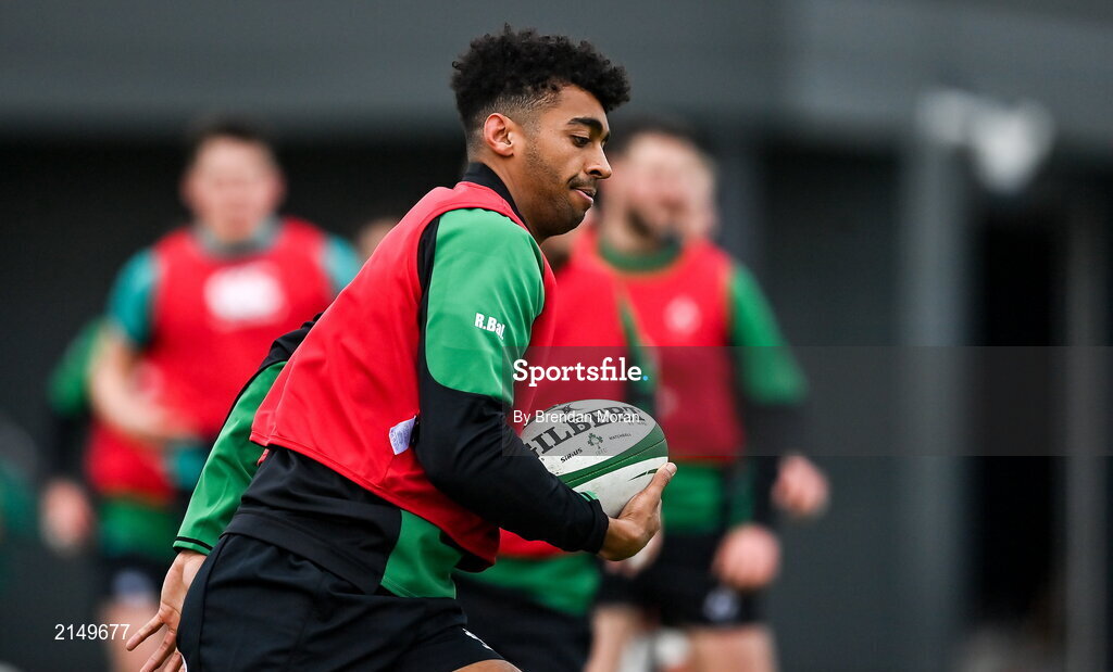 26 January 2022; Robert Baloucoune during Ireland Rugby squad training at IRFU HPC at the Sport Ireland Campus in Dublin. Photo by Brendan Moran/Sportsfile