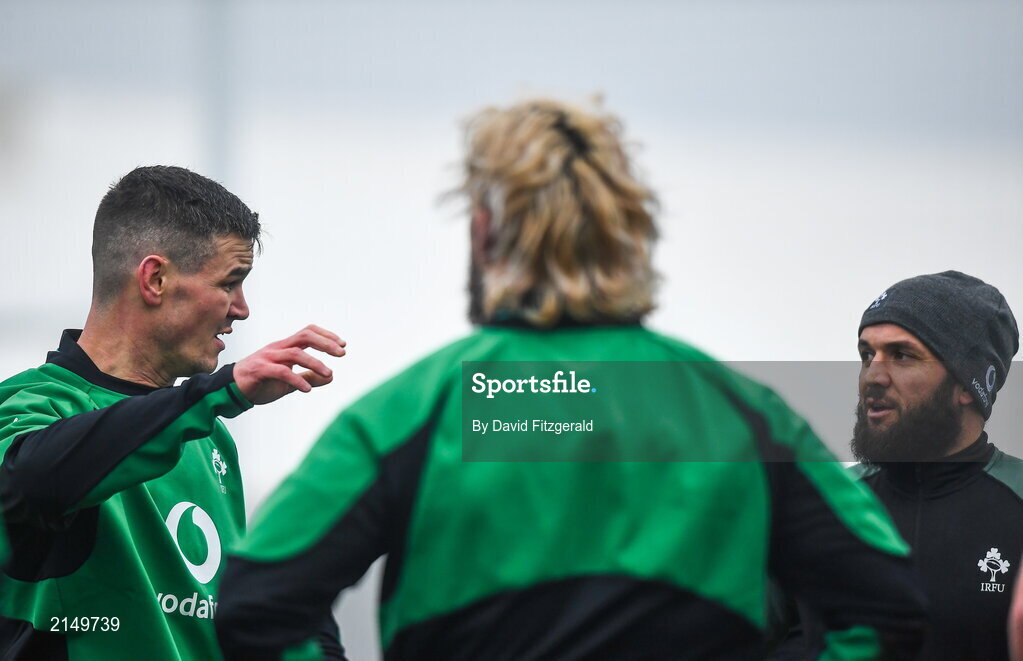 26 January 2022; Jonathan Sexton, left, and Jamison Gibson Park during Ireland Rugby squad training at IRFU HPC at the Sport Ireland Campus in Dublin. Photo by David Fitzgerald/Sportsfile