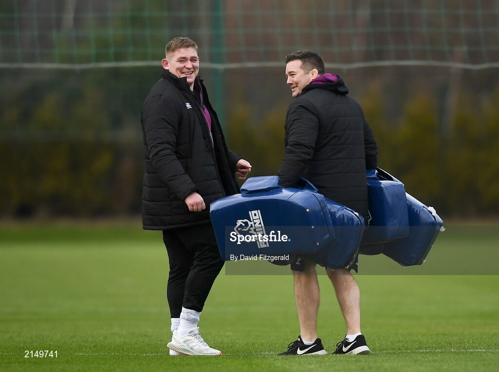 26 January 2022; Tadhg Furlong with National scrum coach John Fogarty during Ireland Rugby squad training at IRFU HPC at the Sport Ireland Campus in Dublin. Photo by David Fitzgerald/Sportsfile