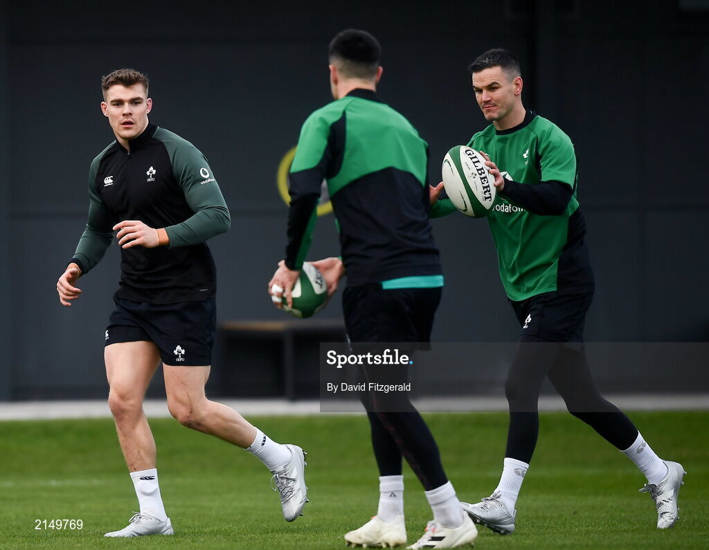 26 January 2022; Ireland players, from left, Garry Ringrose, Conor Murray and Jonathan Sexton during squad training at IRFU HPC at the Sport Ireland Campus in Dublin. Photo by David Fitzgerald/Sportsfile