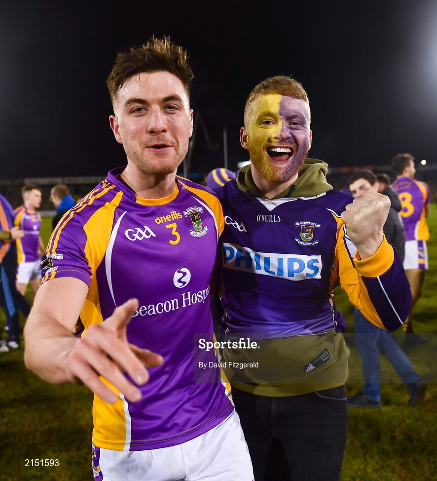 29 January 2022; Andrew McGowan of Kilmacud Crokes celebrates with supporter Dylan Paisley after the AIB GAA Football All-Ireland Senior Club Championship Semi-Final match between Pádraig Pearses, Roscommon, and Kilmacud Crokes, Dublin, at Kingspan Breffni in Cavan. Photo by David Fitzgerald/Sportsfile