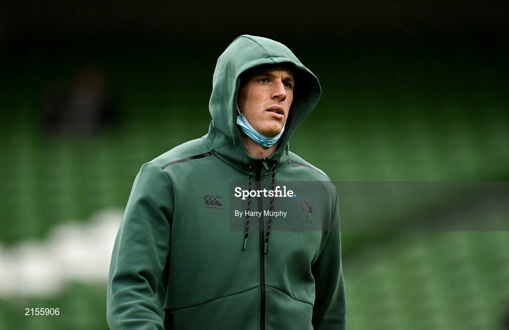 5 February 2022; Ryan Baird of Ireland walks the pitch before the Guinness Six Nations Rugby Championship match between Ireland and Wales at the Aviva Stadium in Dublin. Photo by Harry Murphy/Sportsfile