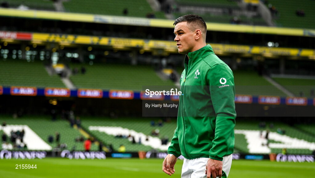 5 February 2022; Ireland captain Jonathan Sexton walks the pitch before the Guinness Six Nations Rugby Championship match between Ireland and Wales at the Aviva Stadium in Dublin. Photo by Harry Murphy/Sportsfile
