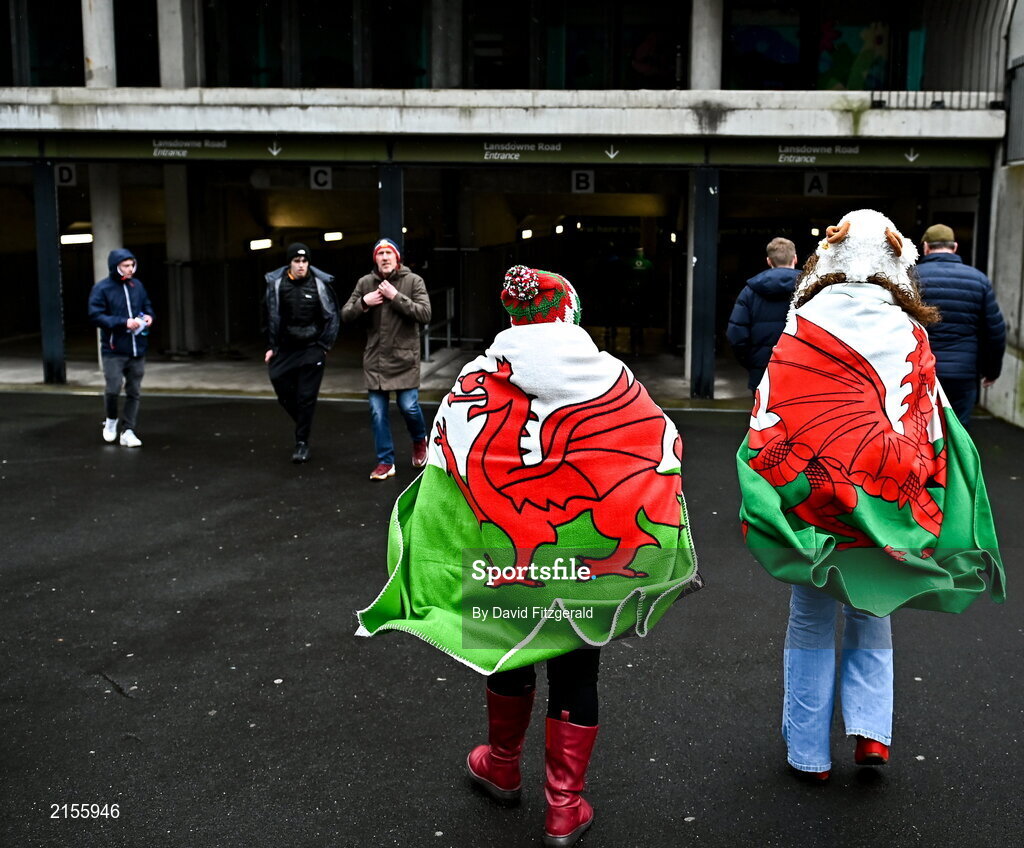 5 February 2022; Supporters arrive before the Guinness Six Nations Rugby Championship match between Ireland and Wales at the Aviva Stadium in Dublin. Photo by David Fitzgerald/Sportsfile
