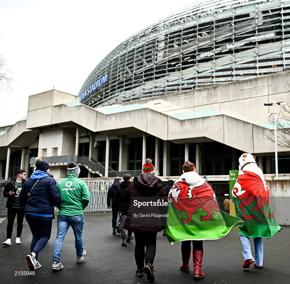 5 February 2022; Supporters arrive before the Guinness Six Nations Rugby Championship match between Ireland and Wales at the Aviva Stadium in Dublin. Photo by David Fitzgerald/Sportsfile