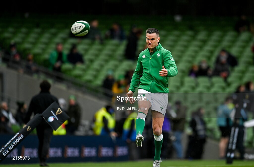 5 February 2022; Ireland captain Jonathan Sexton warms up before the Guinness Six Nations Rugby Championship match between Ireland and Wales at the Aviva Stadium in Dublin. Photo by David Fitzgerald/Sportsfile
