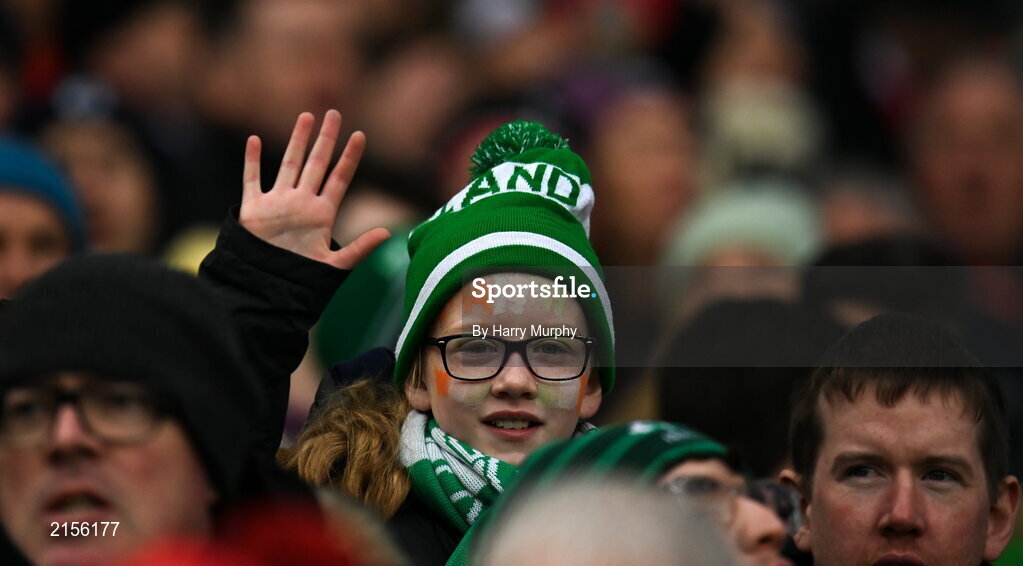 5 February 2022; An Ireland supporter during the Guinness Six Nations Rugby Championship match between Ireland and Wales at the Aviva Stadium in Dublin. Photo by Harry Murphy/Sportsfile