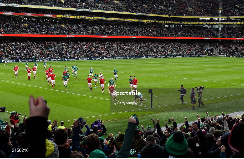 5 February 2022; Bundee Aki of Ireland dives over to score his side's first try during the Guinness Six Nations Rugby Championship match between Ireland and Wales at the Aviva Stadium in Dublin. Photo by Harry Murphy/Sportsfile