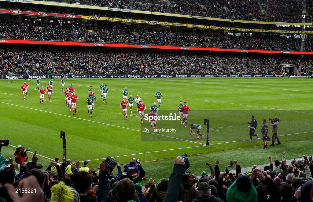 5 February 2022; Bundee Aki of Ireland scores his side's first try during the Guinness Six Nations Rugby Championship match between Ireland and Wales at the Aviva Stadium in Dublin. Photo by Harry Murphy/Sportsfile