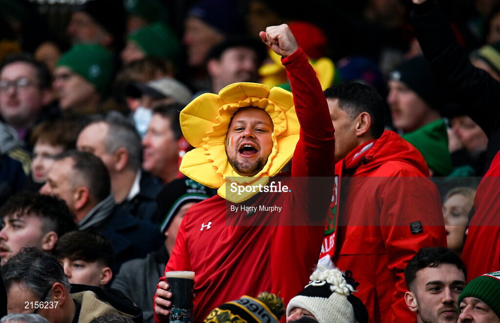 5 February 2022; A Wales supporter during the Guinness Six Nations Rugby Championship match between Ireland and Wales at the Aviva Stadium in Dublin. Photo by Harry Murphy/Sportsfile