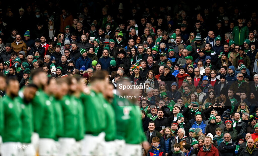 5 February 2022; Supporters look on before the Guinness Six Nations Rugby Championship match between Ireland and Wales at the Aviva Stadium in Dublin. Photo by Harry Murphy/Sportsfile