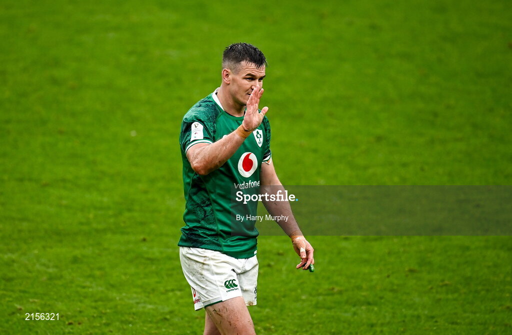 5 February 2022; Jonathan Sexton of Ireland shows appreciation to supporters after being substituted during the Guinness Six Nations Rugby Championship match between Ireland and Wales at the Aviva Stadium in Dublin. Photo by Harry Murphy/Sportsfile