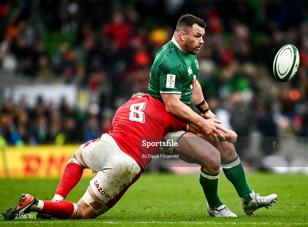 5 February 2022; Cian Healy of Ireland is tackled by Aaron Wainwright of Wales during the Guinness Six Nations Rugby Championship match between Ireland and Wales at the Aviva Stadium in Dublin. Photo by David Fitzgerald/Sportsfile