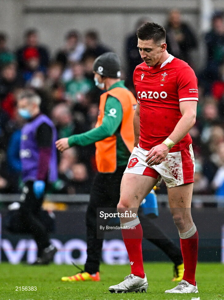5 February 2022; Josh Adams of Wales leaves the pitch after being shown a yellow card during the Guinness Six Nations Rugby Championship match between Ireland and Wales at the Aviva Stadium in Dublin. Photo by Brendan Moran/Sportsfile