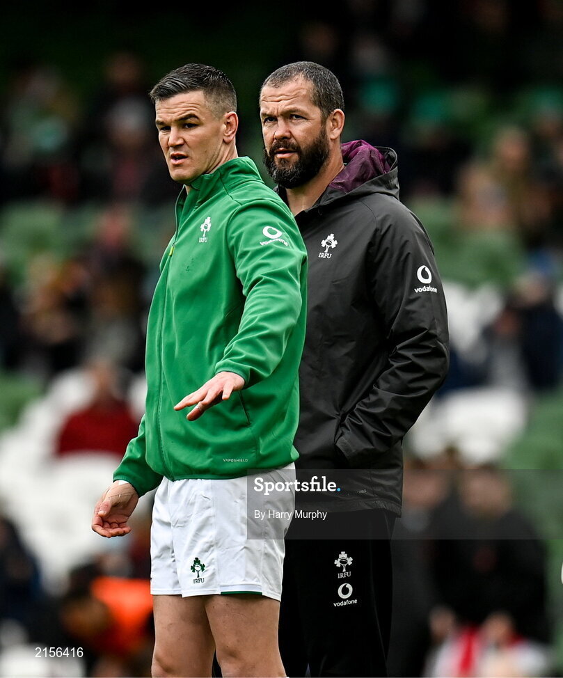 5 February 2022; Ireland captain Jonathan Sexton and Ireland head coach Andy Farrell before the Guinness Six Nations Rugby Championship match between Ireland and Wales at the Aviva Stadium in Dublin. Photo by Harry Murphy/Sportsfile