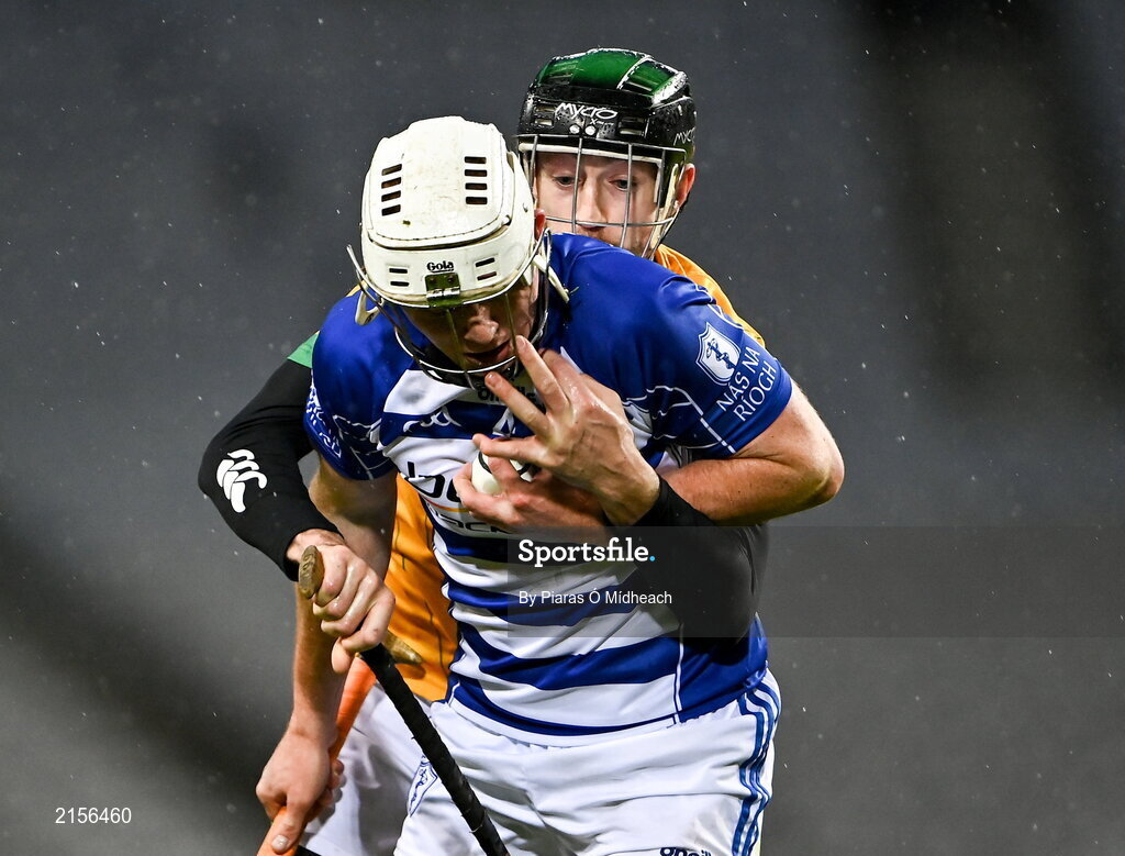 5 February 2022; Conor Gormley of Naas in action against James Godley of Kilmoyley during the AIB GAA Hurling All-Ireland Intermediate Club Championship Final match between Kilmoyley, Kerry, and Naas, Kildare, at Croke Park in Dublin. Photo by Piaras Ó Mídheach/Sportsfile