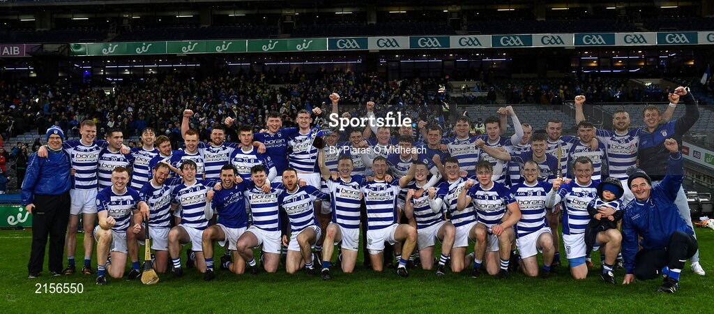 5 February 2022; Naas players celebrate after their victory in the AIB GAA Hurling All-Ireland Intermediate Club Championship Final match between Kilmoyley, Kerry, and Naas, Kildare, at Croke Park in Dublin. Photo by Piaras Ó Mídheach/Sportsfile