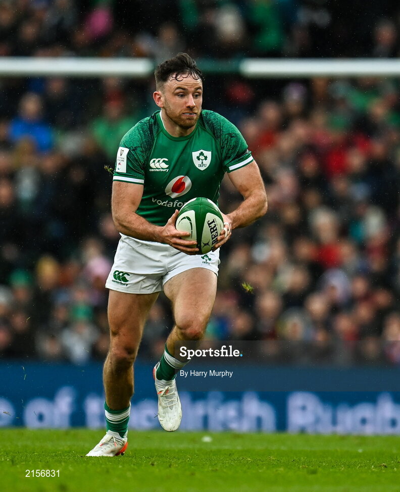5 February 2022; Hugo Keenan of Ireland during the Guinness Six Nations Rugby Championship match between Ireland and Wales at the Aviva Stadium in Dublin. Photo by Harry Murphy/Sportsfile