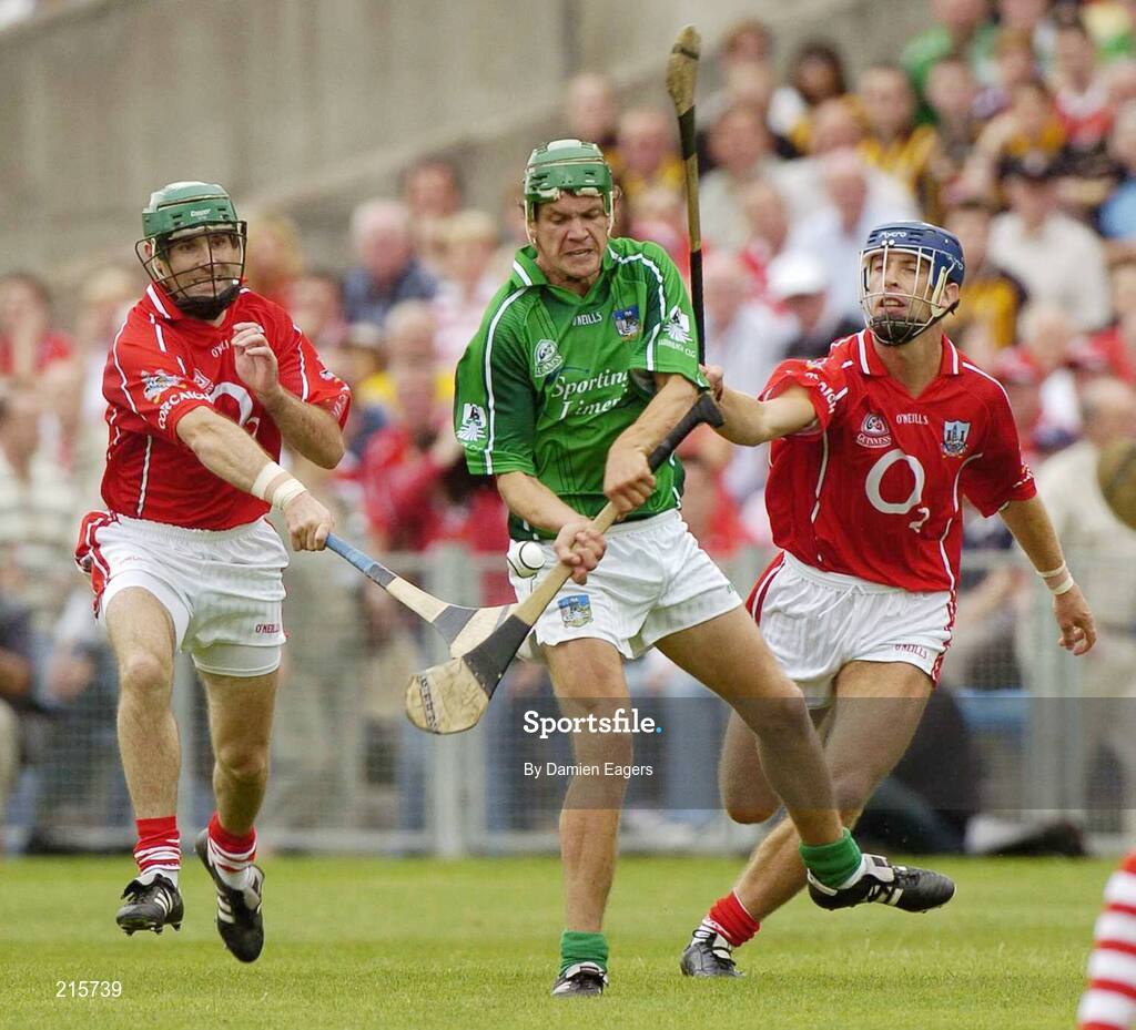 22 July 2006; Mike O'Brien, Limerick, in action against Jerry O'Connor, left, and Ronan Curran, Cork. Guinness All-Ireland Senior Hurling Championship Quarter-Final, Cork v Limerick, Semple Stadium, Thurles, Co. Tipperary. Picture credit: Damien Eagers / SPORTSFILE